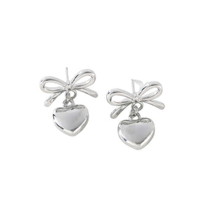 Greenwood Designs Juliet Bow Earrings W Heart Dangle Silver